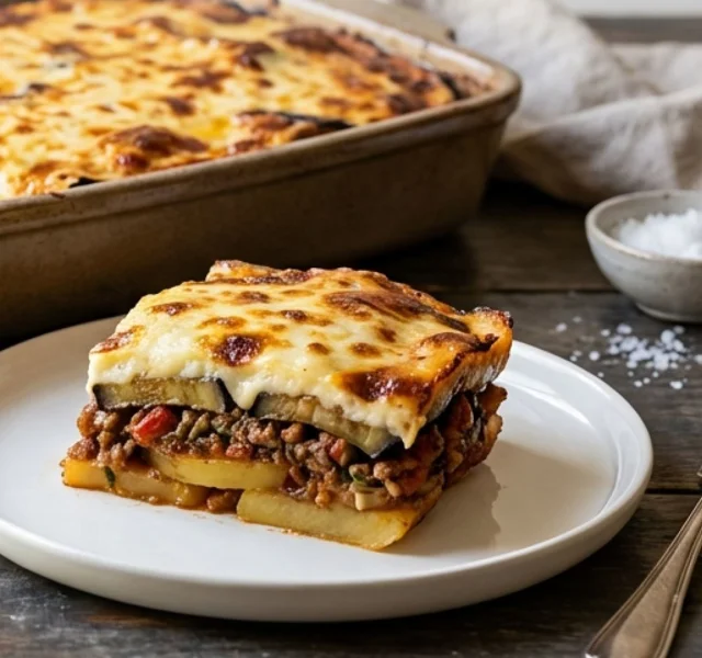 با این دستور، روش تهیه موساکا با گوشت چرخ کرده، بادمجانهای کمچرب (نکته استفاده از سفیده تخممرغ) و لایههای سیبزمینی، پیاز و فلفل دلمهای را بیاموزید. آموزش ادویهزنی (آویشن و سیر) و پخت ایدهآل در فر، بدون افزودن آب.